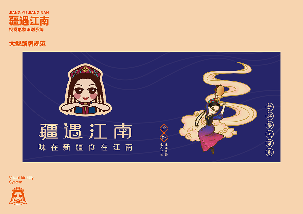 品牌介紹 :疆遇江南餐飲連鎖品牌設計,蘇州外來人口及外來人口指 數均列江蘇第一。由此形成特有的蘇州餐飲文化,南北方味道交融,中原與異域風味 共存, 讓更多外來人口享受蘇式美味的同時,也能吃到更多來自家鄉以及其他城市的特色美食。 疆遇江南就是這 樣一個來自新疆,落地蘇州的特色美食餐飲品牌。在保留原有新疆美食 經典菜系的同時,融入蘇式文化,打造 一個全新的餐飲體系,形成名片化、連鎖化運作的地域餐飲品牌.