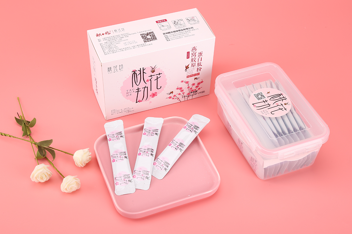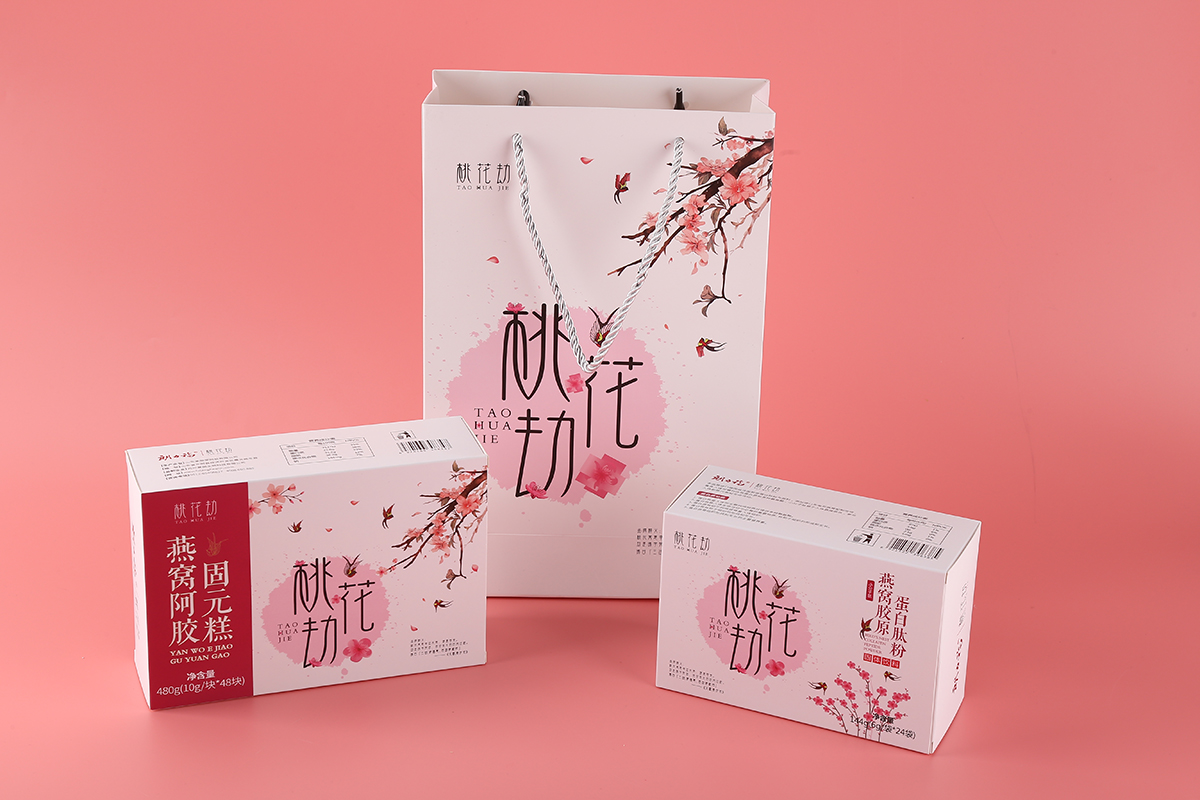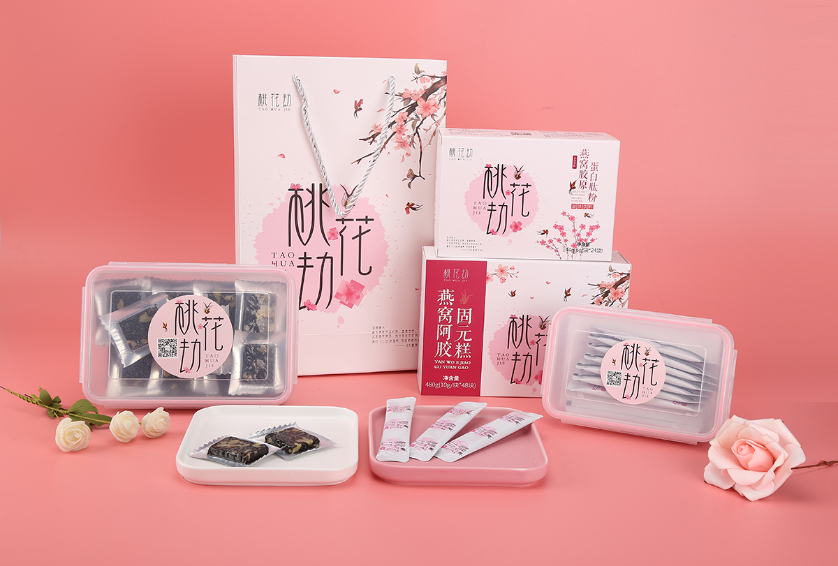 品牌介紹:朗力福集團(tuán)之桃花劫品牌LOGO設(shè)計(jì)及包裝設(shè)計(jì)系列,桃花寓意幸運(yùn)長(zhǎng)壽、健康容美,好產(chǎn)品+極地視覺+好營(yíng)銷就無(wú)敵了,考慮到是女性的保健品,整體風(fēng)格設(shè)計(jì)的比較柔美、愜意。包裝設(shè)計(jì)分為2個(gè)系列固原糕燕窩阿膠、蛋白鈦粉燕窩膠原。
