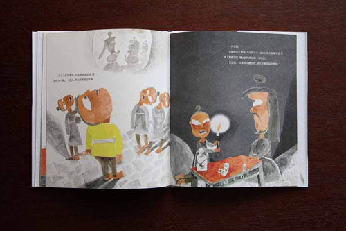 繪圖表現力強,以暖色調營造了很好的氛圍;文字與繪圖協調一致,位置編排合理,圖片的視角一直在變化,富有節奏感;合和頁構建了寬闊的閱讀空間,人物如同舞臺表演一樣,生動形象;版權頁與正文不放在一個合和頁上會更好,封面的紙板稍嫌厚重。