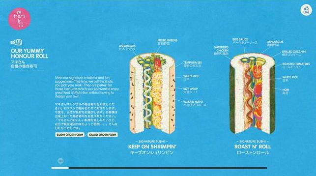 位于新加坡的日式快餐店Maki-San,是新加坡第一家可以完全定制的壽司店。除了在個(gè)人口味上推出獨(dú)特的方式讓顧客來選擇、制作專屬于顧客的獨(dú)一無二手卷、壽司之外,大家還可以依據(jù)喜好,為自己搭配的手卷命名!而且Maki-San的設(shè)計(jì)保有許多日式的可愛元素,同時(shí)也納入色彩強(qiáng)烈的歐系風(fēng)格,看看這可愛的包裝設(shè)計(jì),是不是令人食欲大開呢?