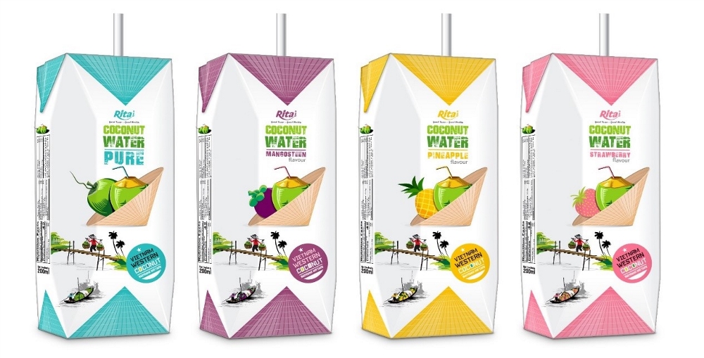 Rita的標(biāo)簽創(chuàng)意來(lái)自具有越南特色和辨識(shí)度的斗笠(笠帽),而東南亞的椰子也久負(fù)盛名,兩者結(jié)合能清晰直觀地向消費(fèi)者表達(dá)地標(biāo)性產(chǎn)品。