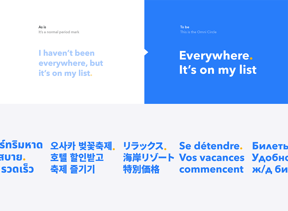 國(guó)際版和國(guó)內(nèi)版最大的區(qū)別在于剔除了海豚圖形,而是注重強(qiáng)調(diào)域名本身。希望能夠?qū)⑵放泼Q變?yōu)槠放谱畲蟮馁Y產(chǎn),成為旅游的代名詞。顏色方面則繼續(xù)繼承了原有的藍(lán)色、橙色和白色。