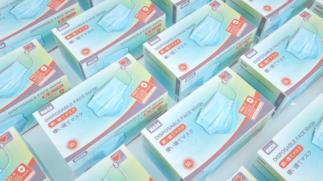 極簡白的立體包裝,整體設(shè)計(jì)更加小而精致,正面插畫的口罩外觀形象直接簡單,加入藍(lán)色描邊使口罩更有辨識(shí)度。