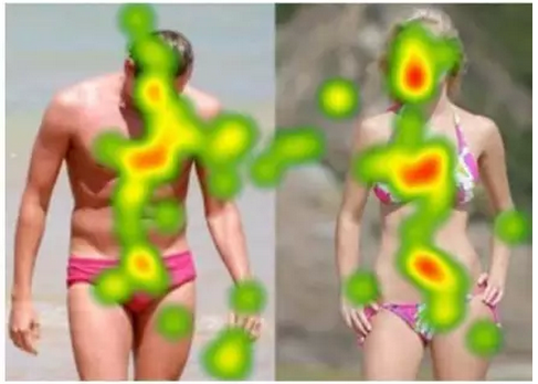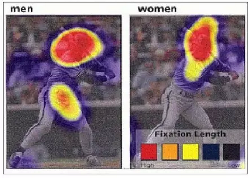 女人會關注人體臉部和軀干(左圖)。男人會更多關注旁邊的雜物(右圖)。