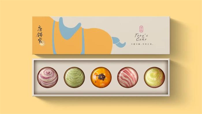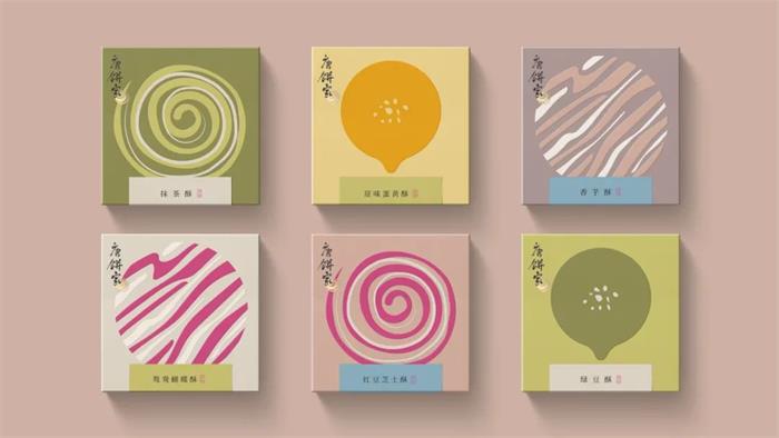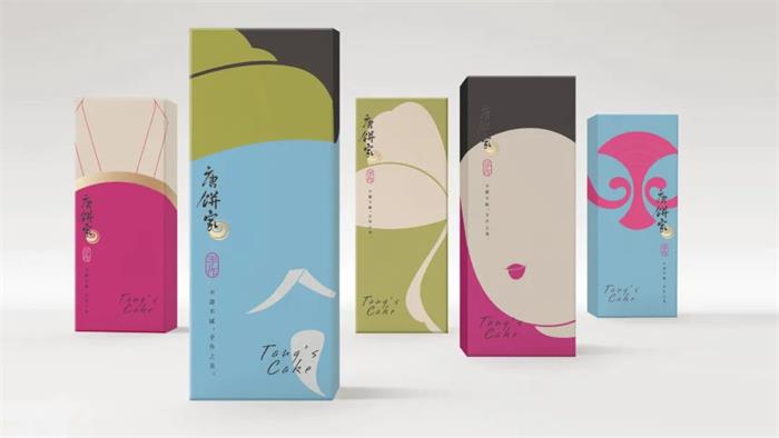 于2002年創(chuàng)立的唐餅家中式糕點品牌,這次的包裝形象升級以簡潔的設計手法和國潮風格,結合唐朝代表性的宮廷或官家元素,演繹了全新的唐朝韻味。首先包裝以唐朝畫作重現(xiàn)精致唐風,帝后組合作為品牌核心形象,結合唐朝文化藝術中的三彩馬、三彩駱駝及唐朝經典建筑設計。另外通過扁平化色彩,抽象線條的畫面勾勒,巧妙展示了產品特有的外觀形象。整體波普化的呈現(xiàn)形式,契合品牌調性的同時,系列的視覺效果增添了幾分美感。而另一個版本的獨立包裝,莫蘭迪色調背景下以抽象化呈現(xiàn)了食品本身的外觀,激發(fā)消費者的味覺聯(lián)想。